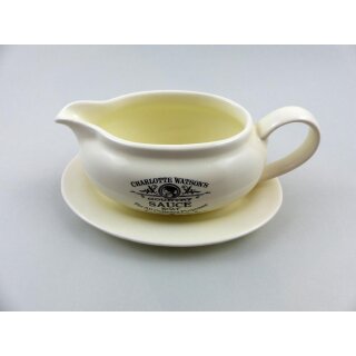 Dieser klassische Saucen-Spender aus der Charlotte Watson Collection erinnert an das ländliche Leben in England und bringt britischen Landhaus Flair auf Ihre Tafel. Der britische Hersteller nennt ihn aufgrund der klassischen Form liebevoll "Sauce-Boat". Der Spender aus gebrannten Ton wird gleich mit einem passendem ovalem Unterteller geliefert und durch den speziell geformten Ausguß lässt sich die Sauce optimal dosieren.
