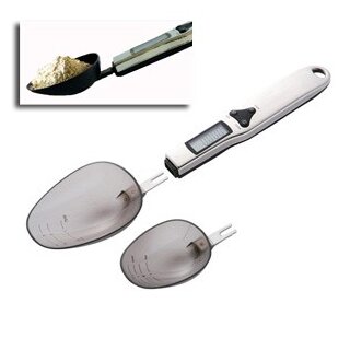 Aus ABS-Kunststoff und Edelstahl. Lieferung mit Batterien. Messbereich bis 300 g. Inhalt kleiner Löffel: 28,4 ml, Inhalt großer Löffel: 57 ml. Maße: 230 x 50 x 26 mm. Gewicht: 100 g.